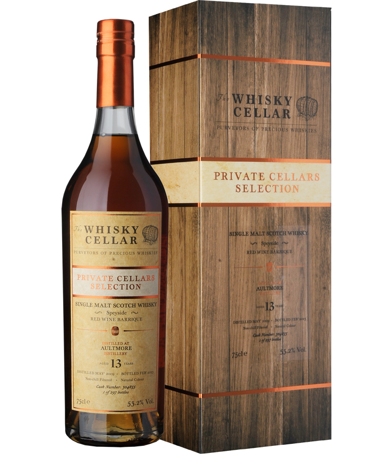 Die 1896 in der Speyside gegründete Destillerie Aultmore ist berühmt für die Herstellung eines robusten, reichhaltigen und duftenden Whiskys. Dieser Whisky reifte 13 Jahre lang in einem «single» Rotwein-Barrique und zeigt in der Nase Noten von Erdbeer-Tarte, reifen Pflaumen, rosa Pfefferkörner, dunklen Heckenkirschen und exotischen Gewürzen. Am Gaumen widerspiegeln sich diese Noten mit anhaltendem und wärmendem Abgang. Dies ist eine exklusive Abfüllung für Baur au Lac Vins in Zusammenarbeit mit The Whisky Cellar.